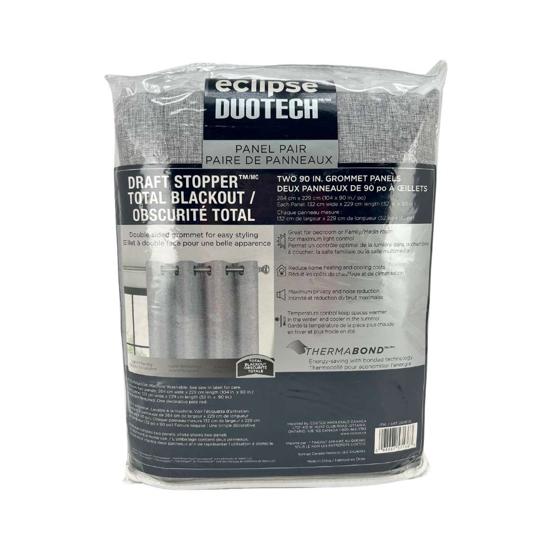 Eclipse DuoTech Draft Stopper + Total Blackout Curtains: Light Grey